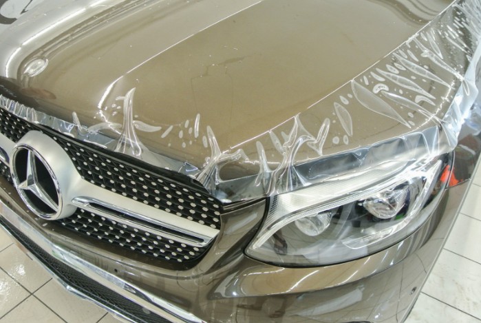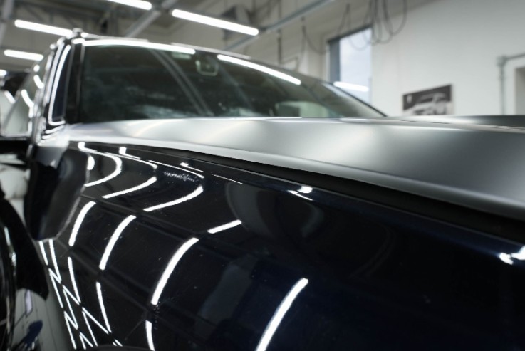 Применяется мокрый метод, при котором пленка наносится на влажную поверхность, принимает точную форму кузова и приклеивается к покрытию.